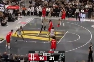 德克萨斯大学橄榄球队成员观战马刺 星三代曼宁与文班合影换球衣