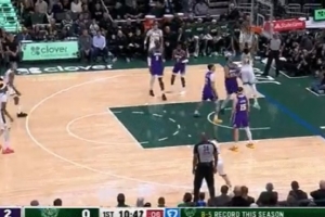 犯规无疑!东契奇弧顶造成库兹马三分犯规 雄鹿挑战失败