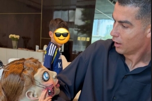 体育资讯10月31日讯 乔治娜更新社媒动态,晒出C罗看到女儿万圣节装扮的照片。